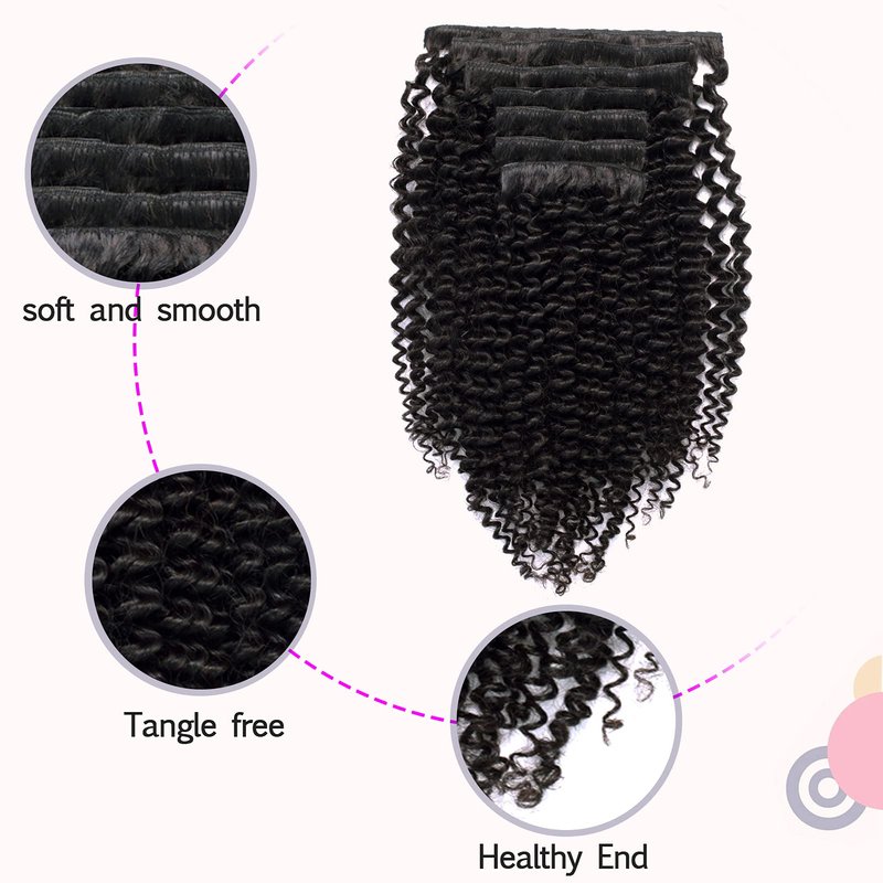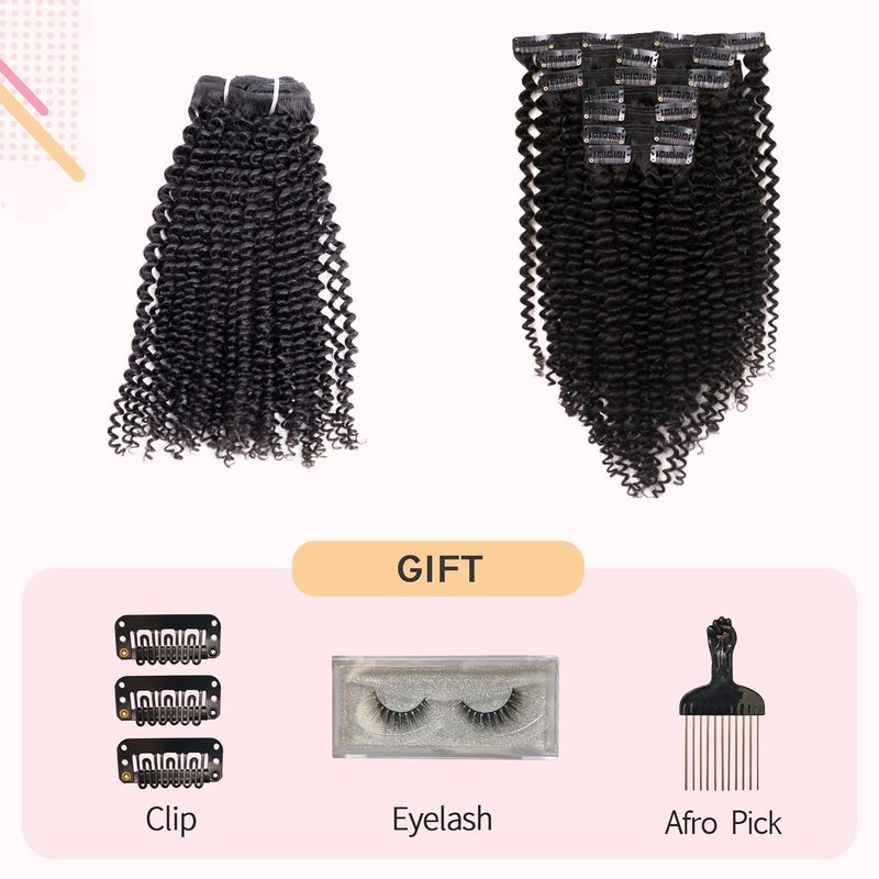 Vanalia Kinkys curly hair clip in extensions,3C 4A Clip ins Natural Black, 100% Remy Human Hair 120 Gram 7 Pieces 18 Clips for African American Black Women Kinky Curly 14 Inch