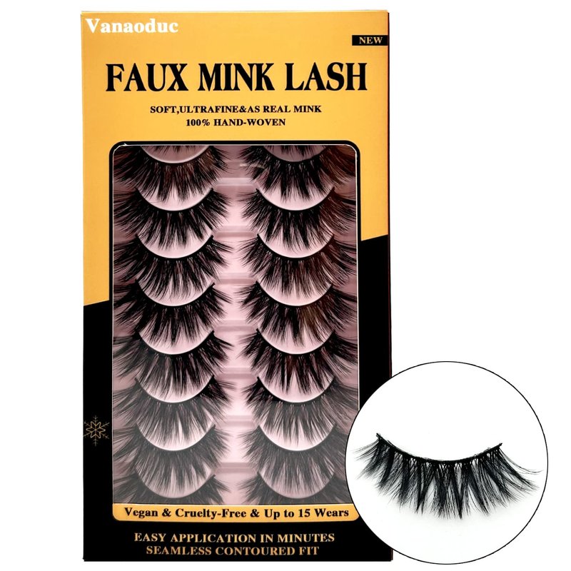 VANAODUC Eyelashes False Lashes Natural Look 15-18MM, Faux Mink Lashes 5D Fluffy Cat Eye Lashes Full Volume Fake Lashes Pack, 10 Pairs,Lightweight & Comfortable, Reusable, Cruelty-Free