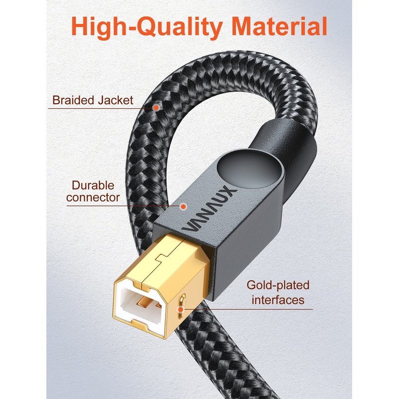 - Premium Material: VANAUX USB 2.0 printer cable is double-shielded with silver-plating pure copper and cotton braid to ensure superior transfer against interference, providing maximum protection against electromagnetic interference (EMI) and radio frequency interference (RFI).