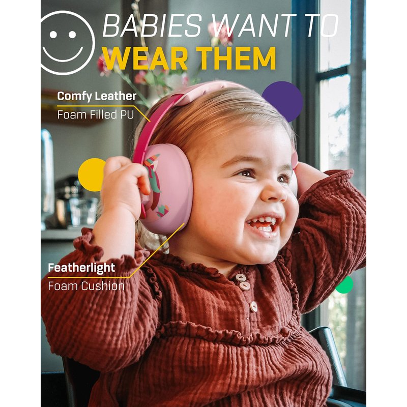 Vanderfields Baby Ear Protection Noise Cancelling Headphones for Babies, Toddlers, Infants 3 months to 2 years,Pink Unicorn