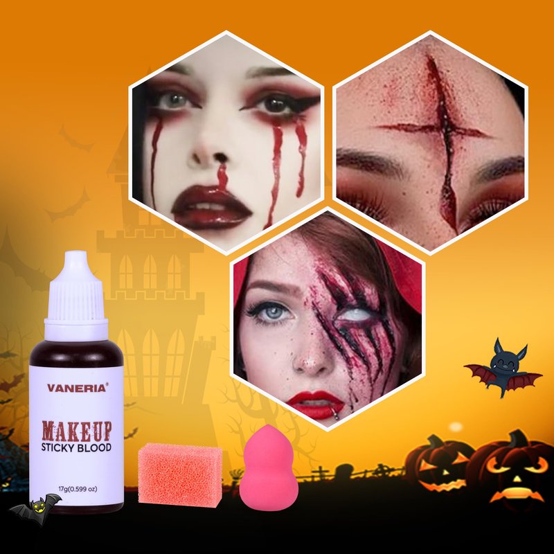 - Halloween Blood Makeup:Realistic fresh fake blood super soft and sticky stage blood.Ideal for creating a range of realistic and fresh looking injuries.It continues to drip,so it's great for eye blood,eye drops and nosebleeds.The fake blood capsule is filled with powder,open the capsule and pour the powder into your mouth,it will melt quickly to form realistic fake blood (It made of starch and coloring,recommended not to swallow)