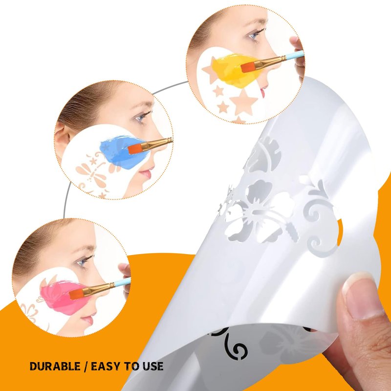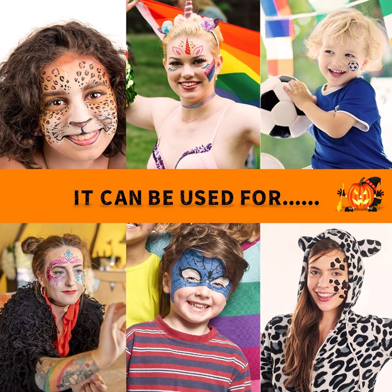 - Oil-Based Face Paint Palette:Creamy Texture flawlessly cover the skin;Highly pigmented;Safe for sensitive skin&ergonomic design,face paint makeups are water based,won't itch,crack or irritate the skin,and will come off easily with mild soap.Our face painting kit includes 5 set of reusable stencils that will make your facepainting easier,so you don't get stuck with no idea how to paint.The templates are made from durable PVC plastic