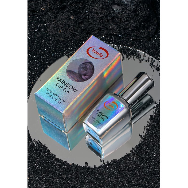 Vanfa Soak Off Gel polish Holographic Glitter 9D Cateye - Rainbow Cat Eye 0.5 Oz