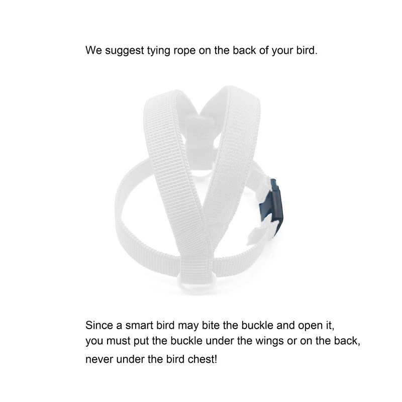 - Easy to put on with a buckle.Please look at the video instruction and learn how to put it on. Please try couple of times gently before your birds get used to this new toy. We hope both your bird and you will be happy after some trials.