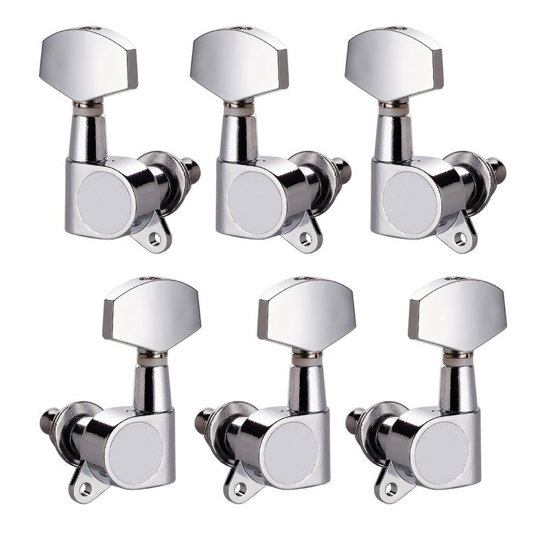 Vangoa 3L3R 6 Pieces Guitar String Tuning Pegs Tuner Machine Heads Knobs Tuning Keys for Acoustic or Electric Guitar, Chrome Descriptions: Featuring precision 15:1 ratio, sealed lubrication, cast housings, and removable metal knobs. 3 tuners per side. Includes mounting screws. Features: 1. Chrome tuning peg machine heads. 2. 3-Per-Side. ( 3L+3R ). 3. Gear Ratio: 15:1 4. Including mounting screws. Package Include: 6 x Machine Heads
