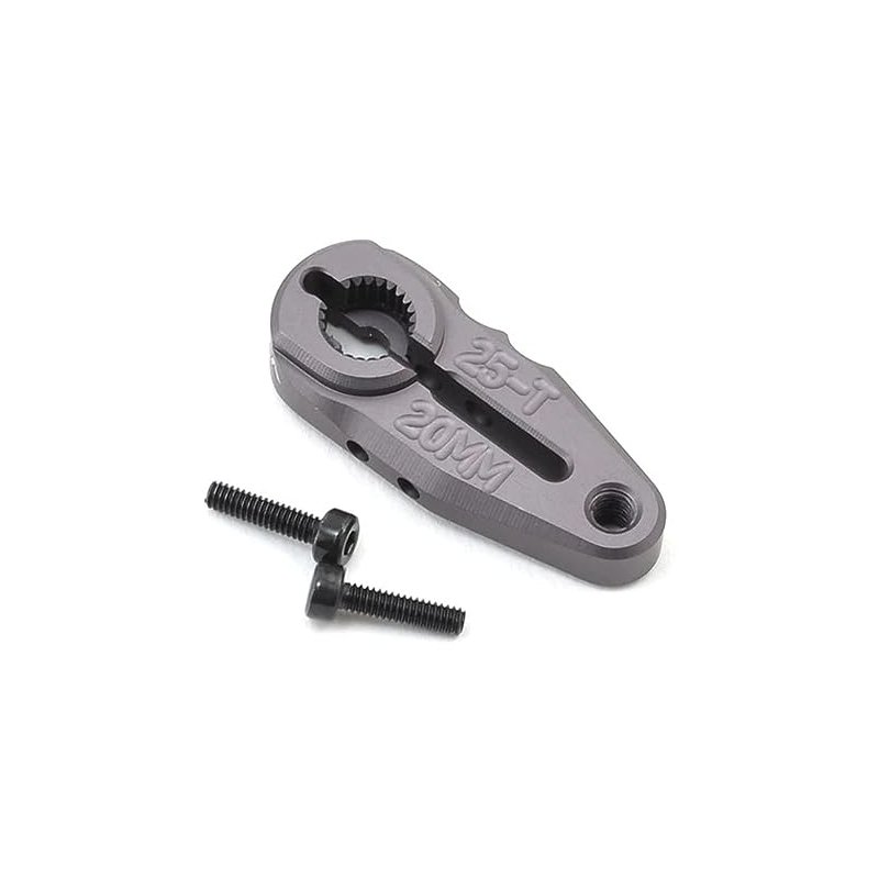 25T (25 tooth servo spline)* 20mm from center of servo output to center of steering link hole Milled from high quality aluminium Unique clamping style keeps splines more engaged on the servo output *Check manufacturers specs to find what servo spline you need.