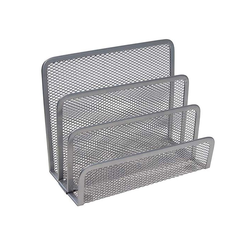 VANRA Small Letter Sorter Desktop File Holder Organizer Metal Mesh with 3 Vertical Upright Compartments (Silver)