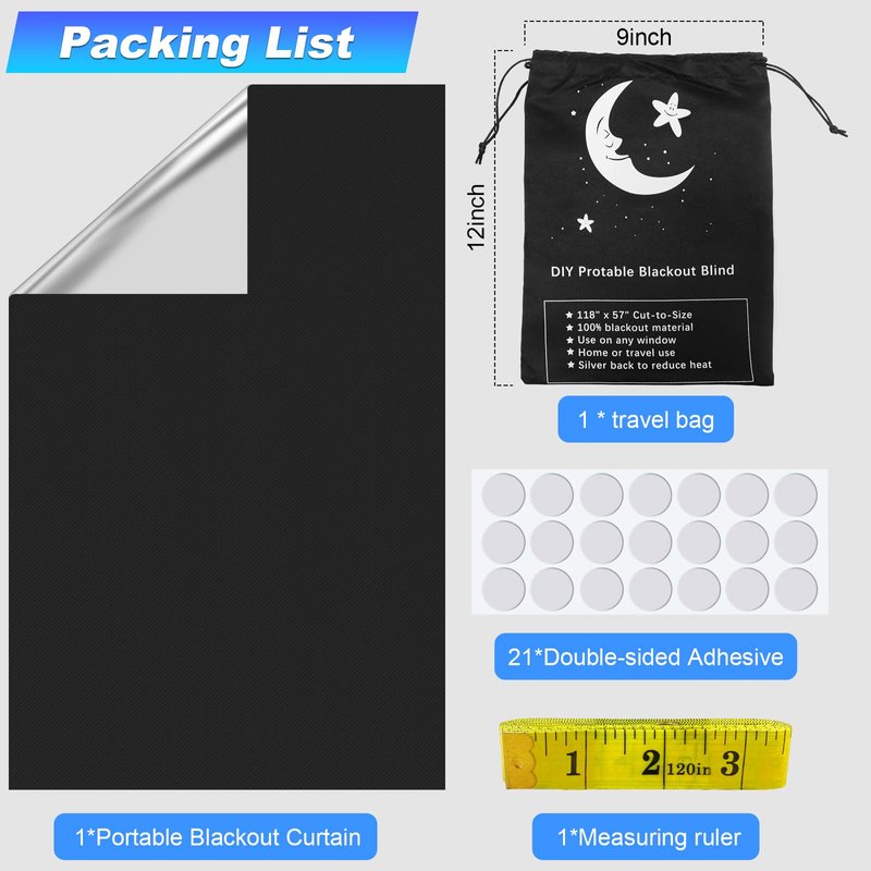 Vanten Blackout Blinds----Creating a Comfortable Pitch-black Sleeping Atmosphere for You! β Blocks 100% sunlight and UV. β Cut to size, and fit any windows. β Attaches without drilling or tools. β Easy to install or remove. β Portable, home or travel use. β Silver back, reduce heat gain. Widely used for nursery, bedroom, hotel room, travel, and rented flat. Also as portable and temporary sleeping items. 100% PREMIUM BLACKOUT MATERIAL Vanten blackout blind is made of strong and soft high-density oxford fabric on one side, which can block 100% of sunlight and regulate room temperature so you can enjoy a comfortable and relaxing sleep.