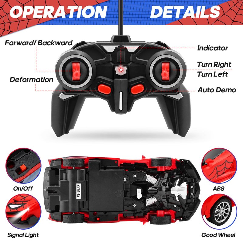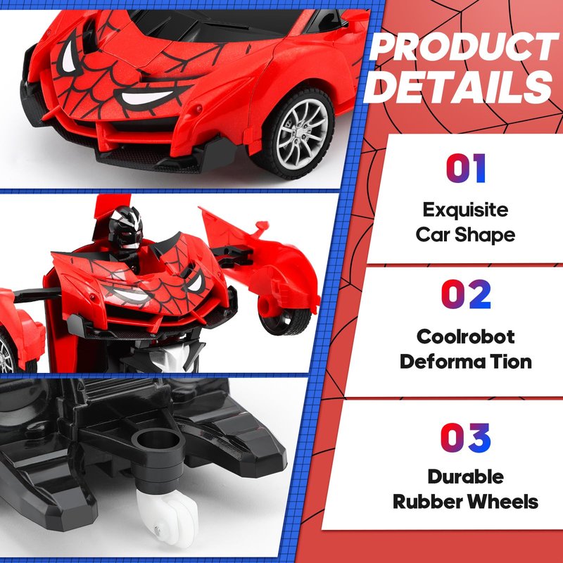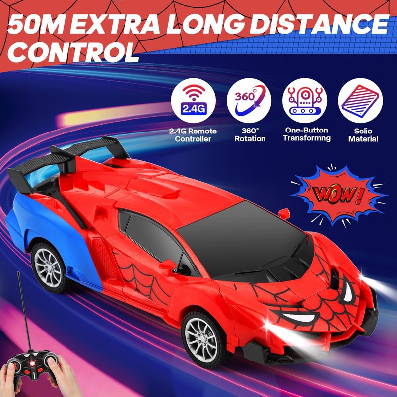 - 2-in-1 Boys Toy Car - This RC car combines both transformation and robot functions, and is larger than other transforming toy cars. It smoothly switches between car and robot modes with one-click deformation, providing endless fun for kids