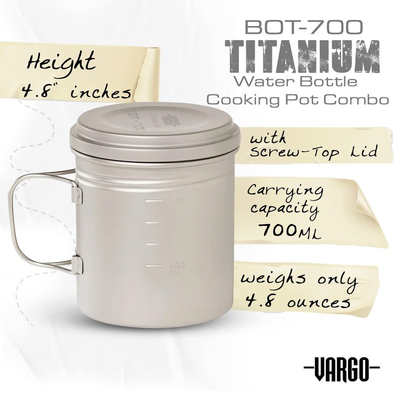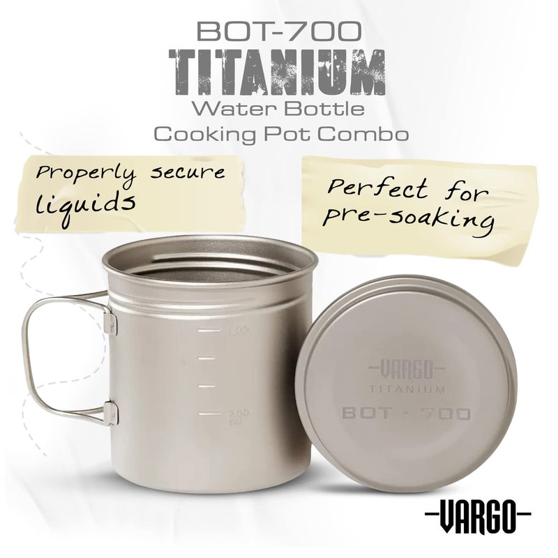 Vargo BOT - 700 | Titanium Cooking Pot and Water Bottle with Foldable Handles and Watertight Lid | 700ml (23 oz.) Durable & Lightweight Model T-466