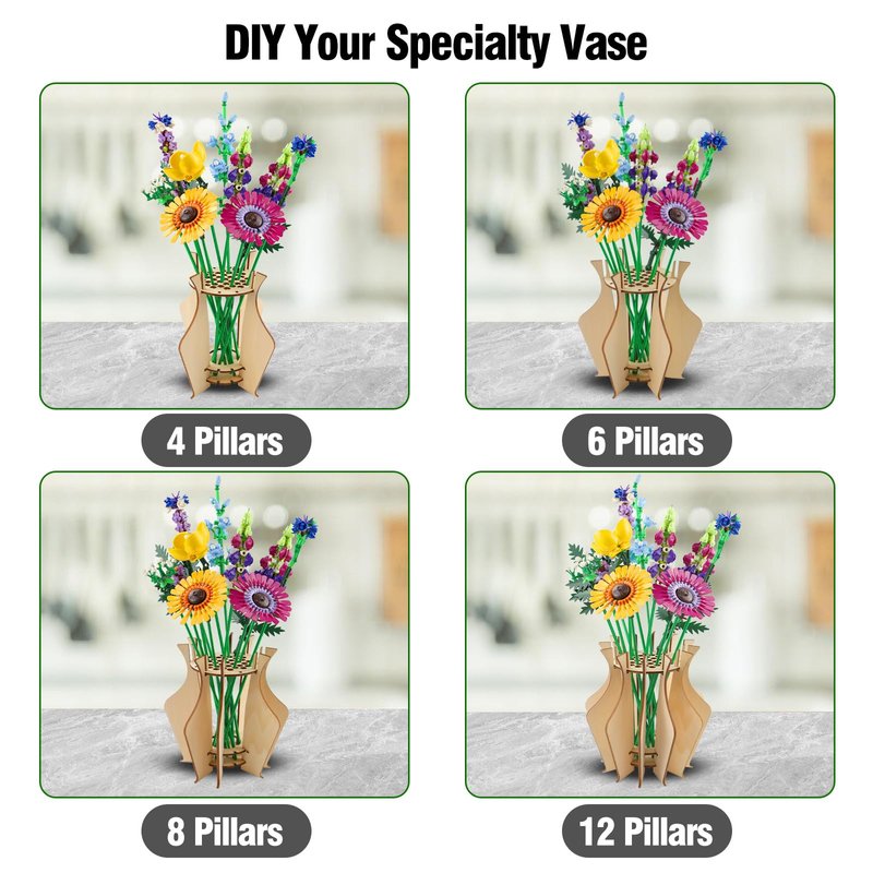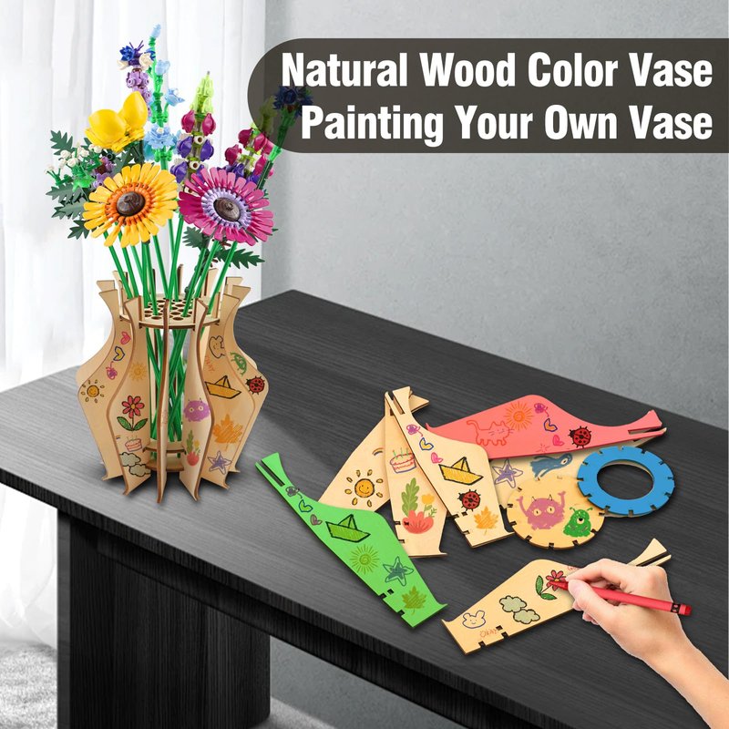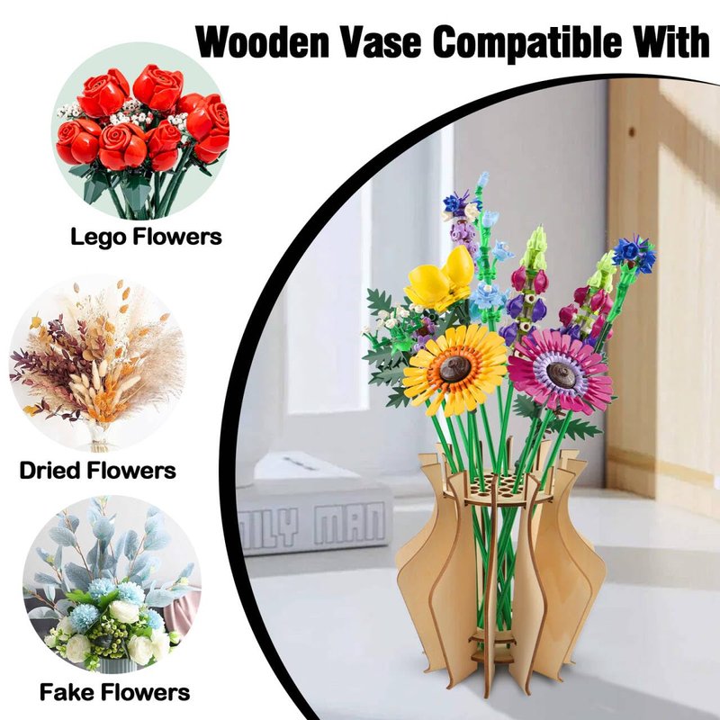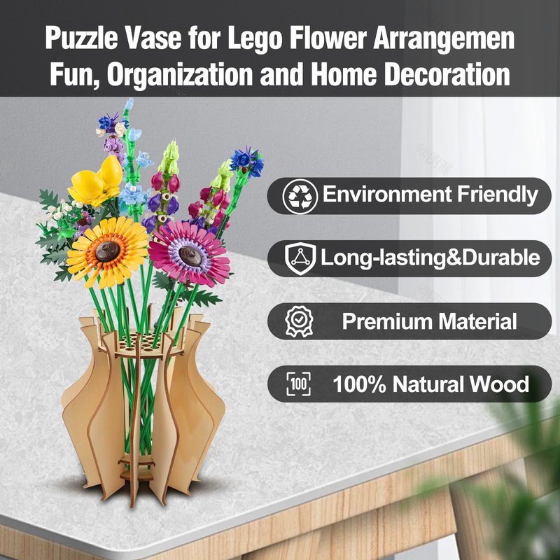 - Unique Design: Elevate for Lego flower display with our handcrafted wooden puzzle vase, specially designed for Lego flower enthusiasts.