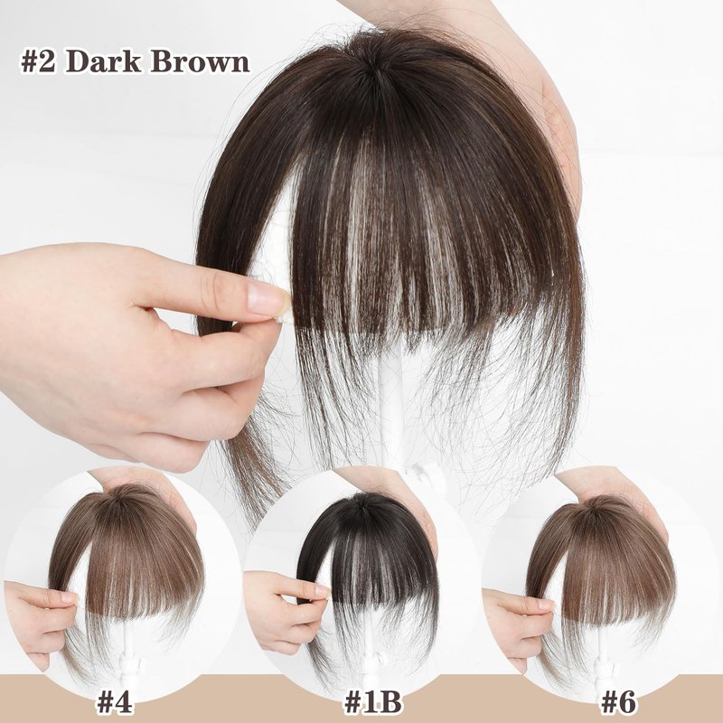 - 【 Try and Enjoy the Hair Topper with Bangs 】Our human hair bangs will help you to change a new curtain bangs hair clip hairstyle in seconds, your new look will come instantly, bang clips for hair will add new experience and happy mood to you, you can cut and repair it slightly as you like also.