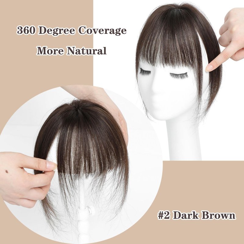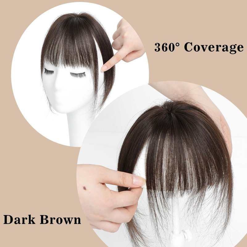 VASILIA Bangs Hair Clip, Clip in Bangs Hair Toppers for Women 100% Real Human Hair, Clip on Bangs 360° 3D Cover Wispy Fake Clip in Hair Extensions for Women Daily (Dark Brown)