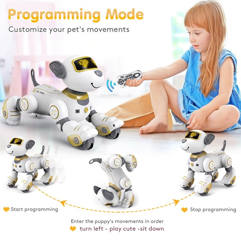 - Programmable Smart RC Robot Toy Dog - You can program and customize your smart robot dog to perform as a real puppy, then the dog robots will record and execute the commands. It will help kids to learn simple programming thinking and simplify difficult problems.