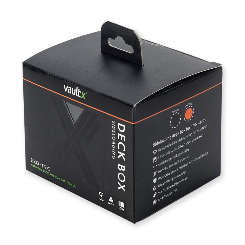 Vault X Exo-Tec® Modular Sideloading Deck Box Module for 100+ TCG Cards. Detachable Magnetic Lid. Fits Commander & Standard Trading Cards. (Black/Electric Orange)
