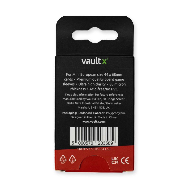 - VAULT X MINI-EUROPEAN SIZE BOARD GAME SLEEVES - Whether you have cards from tabletop board games, pocket and travel games or other cards, keep them protected and extend the lifespan with our premium board game sleeves