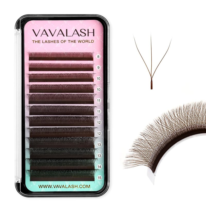 VAVALASH Brown W-shaped Eyelash Extension Brown 3D Premade Fans 0.07 D Curl Volume Lash Extensions Easy Fanning Lashes Matte Brown YY Lashes W Lashes(Brown-W-3D-0.07-D-8-15mm)