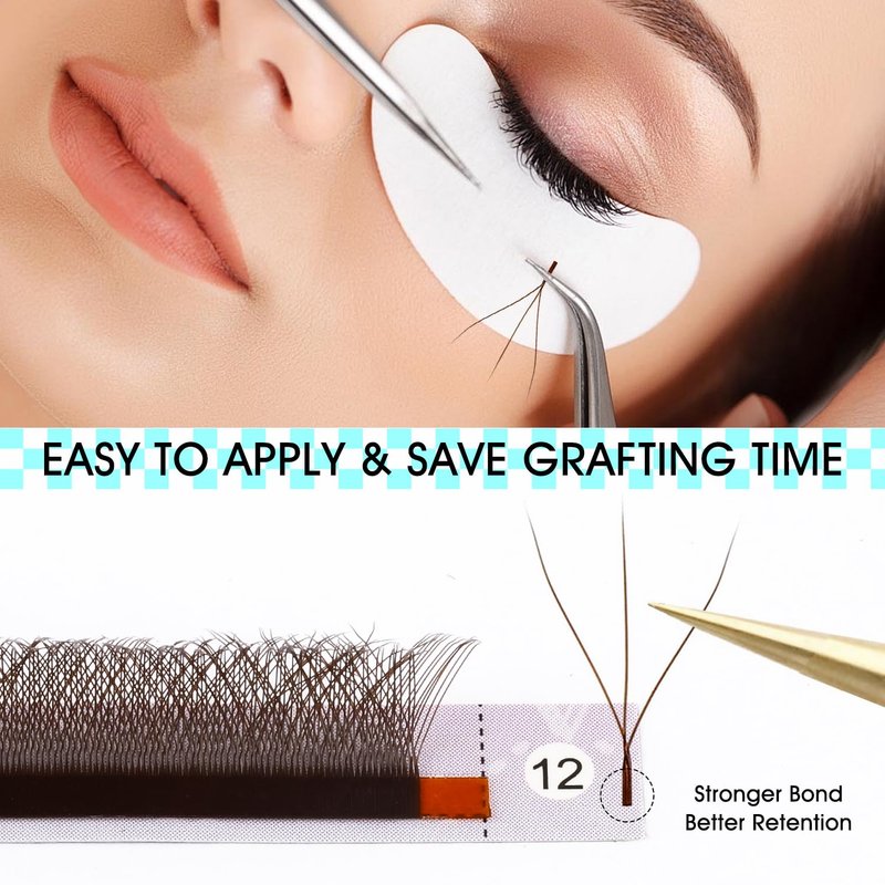 - Better retention: Compared to individual lashes, these W shape premade fans have a long stem which can increase the contact area with natural lashes. Therefore they provide a stronger bond and retention to lashes.