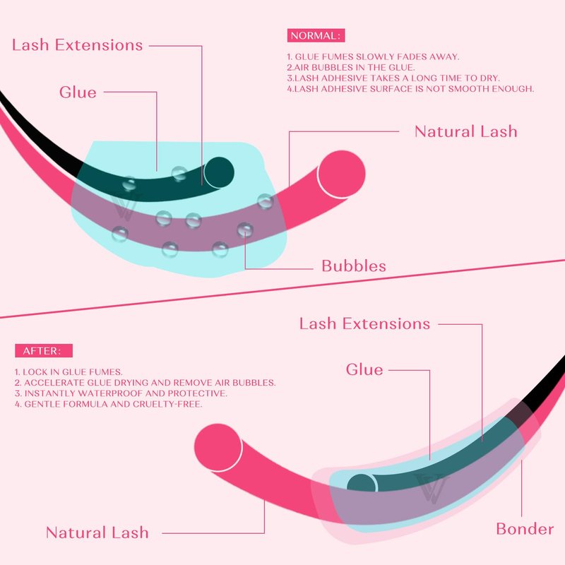 - 【Super Lash Bonder】Lash bonder speeds up the drying time of eyelash extension glue.Use Bonder for Eyelash Extension to ensure a quick and easy application, seal the lashes.It is also suitable for both classic, hybrid, volume and mega volume lashes.