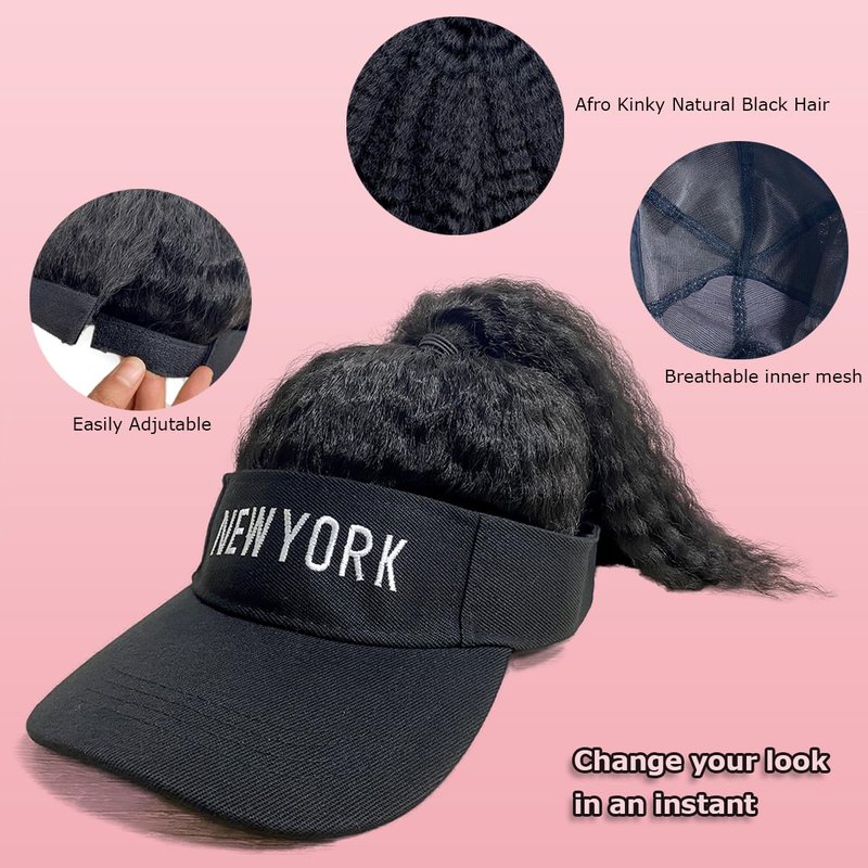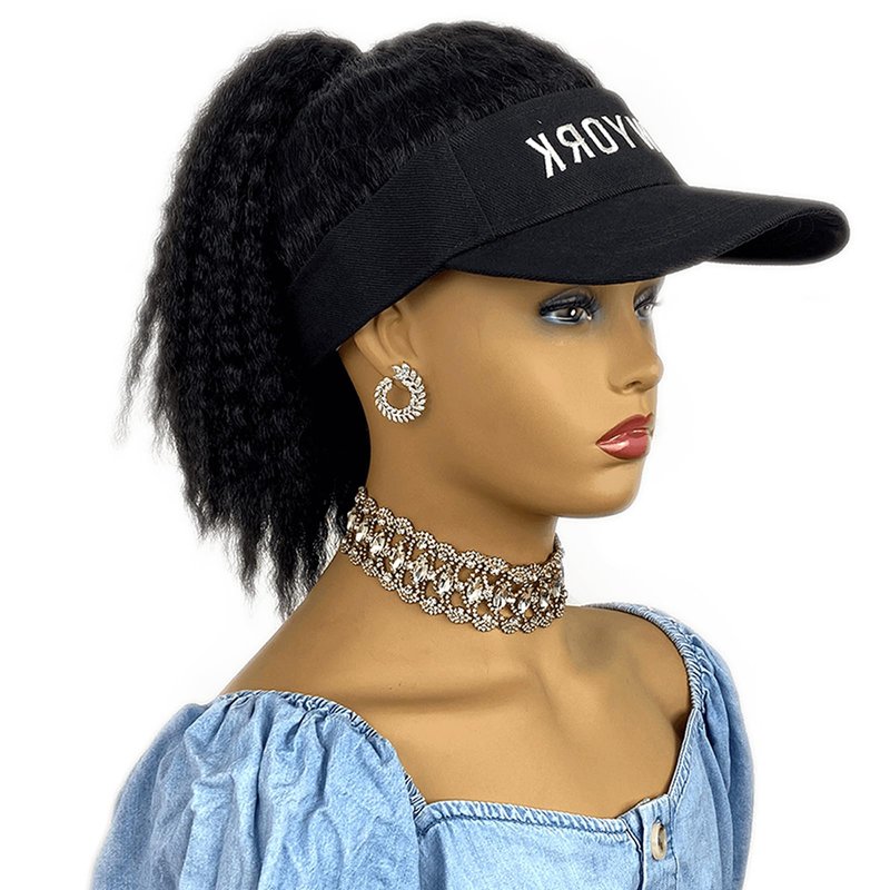 - WIG TYPE: Hat wig with afro kinky hair attached.Black baseball cap with black hair extensions for women. Synthetic short hair wig hat.