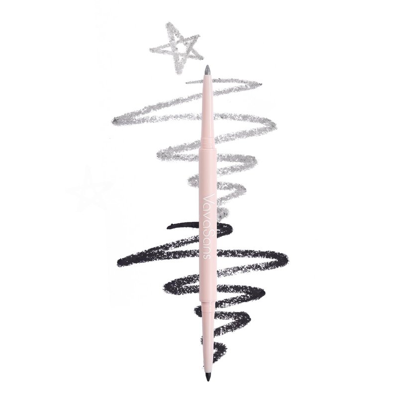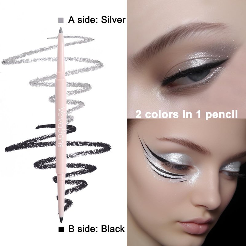 VavaSans Gel Eyeliner Mechanical Pencil Black and Silver Dual Ended Two Color Retractable Eye Liner Pigmented Smooth Creamy Textured Waterproof Smudge Proof Long Lasting Makeup