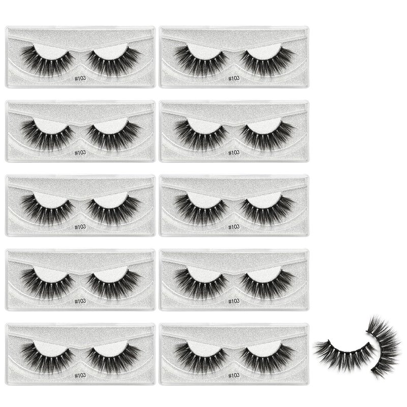 Vayator 10 Pairs Wholesale Natural Mink Eyelashes 3D Mink Lashes Long Thick False Eyelashes High Volume Eye lashes Hand made Makeup Eyelash Soft (S-#103)