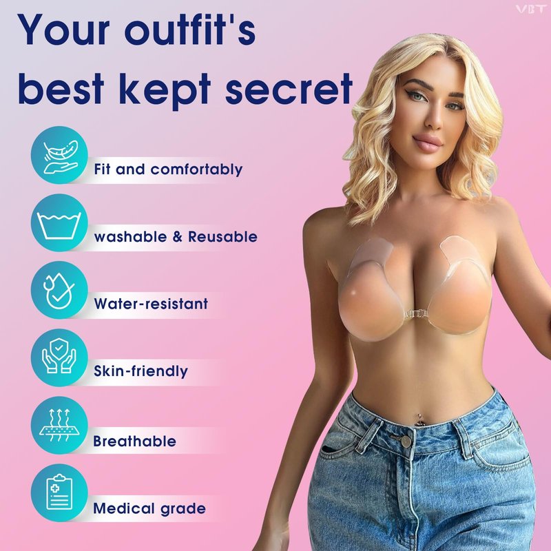- Invisible Front Buckle Design: Our VBT adhesive push up bra has a pair of invisible front clips, they can help push your breasts, and stick on bra cups has strong tensile strength and easy to wear, which can easily gather your chest and create a full and charming V-shaped cleavage with just need a little pull