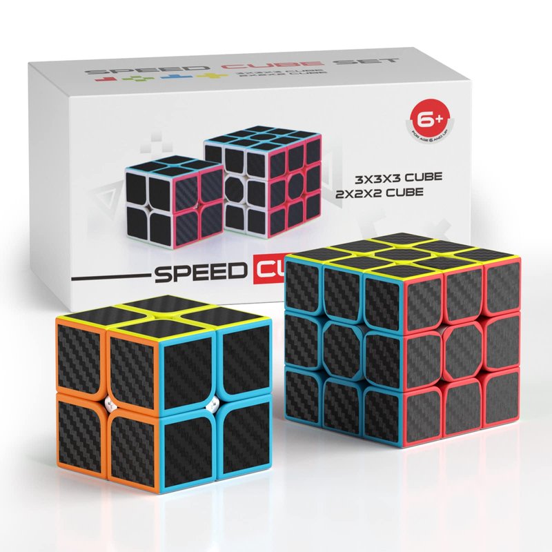 Vdealen Speed Cube Set, 2x2x2 3x3x3 Magic Cube Set, Puzzle Cube Toys Birthday Party Christmas Stocking Stuffers Gift for Kids Teens Adults(Carbon Fiber Sticker)