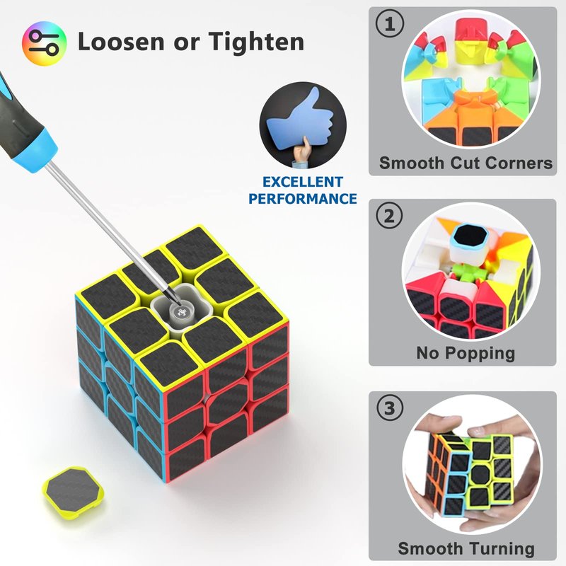 - ✿[RECYCLABLE MATERIAL] This puzzle cube set is made of high quality ABS material and long lasting non-fading carbon fiber stickers, green design, safety and reliability, longevity, safety and health.