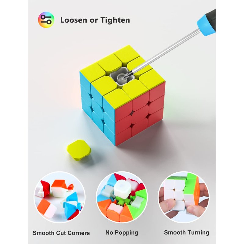 1.Easy Turning: This speed cube set anti-pop structure and anti-jam feature ensure it far easier and quicker to turn.