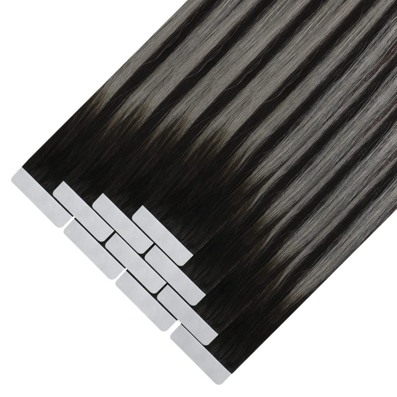 Ve Sunny Tape in Hair Extensions 24inch Balayage Hair Tape in Extensions Black Ombre Grey Invisible Tape in Hair Extensions Real Human Hair Balayage Natural Black Mix Silver Grey 25g 10pcs