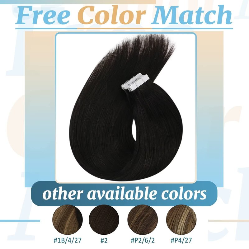 - 4. Hair Color: Ve Sunny human hair extensions tape in have different colors,you could try the different color to make balayage color hair style you like,due to different light,the hair may have color difference,if you are not sure about the color,please contact with us,then we could match the color for you.Addtionally,Our light color tape in hair extensions could only be dyed to darker color, and our dark color could not be bleached,if not,it would damage hair and shorten their lifespan.