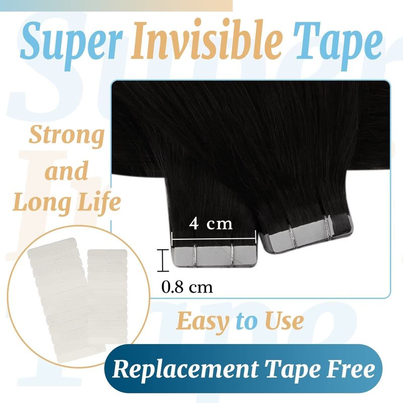 - 1. Advantage : Ve Sunny human hair extensions tape in jet black are 100% real human hair extensions,thick from top to end,our American white tapes have salon quality,they are invisible,strong, and light,they could stay 2-3 months with good care,they are replaceable,if the tapes fall off,you could use the replacement tape we send or contact with us to get the replacement tape.