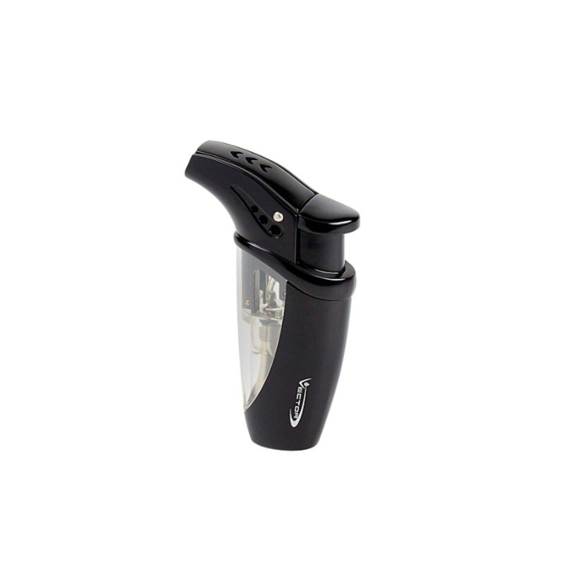 Vector Volt wind resistant jet torch lighter has an oversized fuel window and one-click ignition for your convenience. Comes in a variety of colors and is refillable with butane. Works up to 8,000 feet. Warranty by Vector.