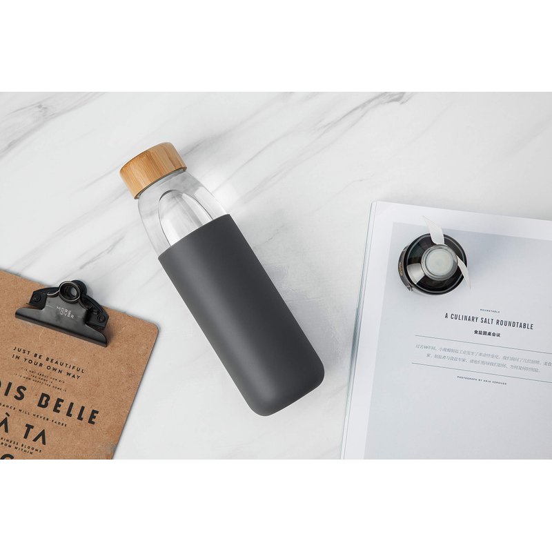 This glass drink bottle is durable, resistant to temperatures, pits, and falls. And with the eco-friendly bamboo lid complete with a food-grade silicone O-ring and a stainless steel insert lid, you can say goodbye to unwanted leaks.