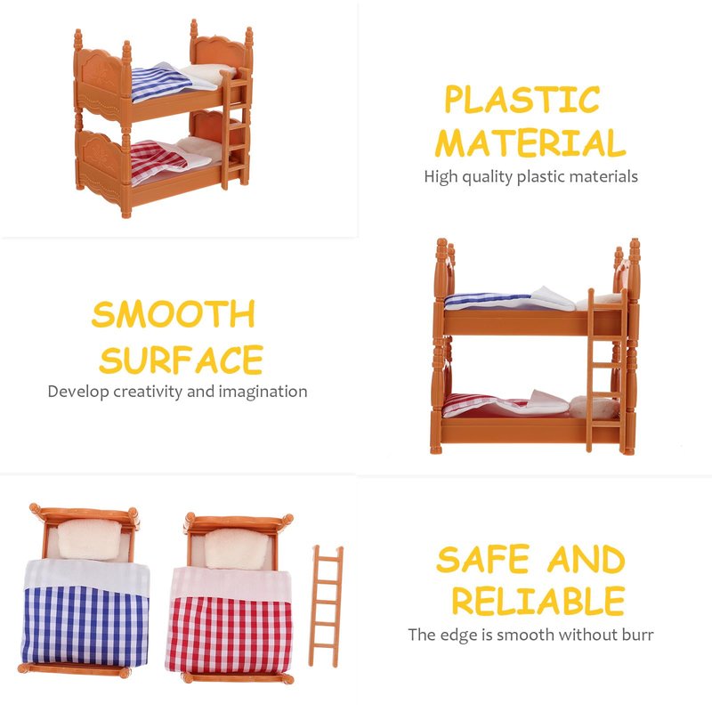 This item is mini bunk beds models, which is made of premium plastic material, practical for use. Can be also used as the photography prop, doll house. Fine workmanship ensures the realistic details. Made of premium material, can be used for a long time.