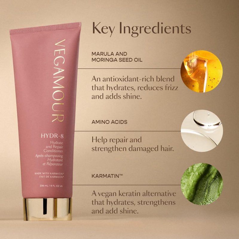 VEGAMOUR HYDR-8 Hydrate and Repair Conditioner - Hydrating Conditioner with Marula Oil, Moringa Oil, Ceramides & Biotin, Natural Conditioner for Dry Hair