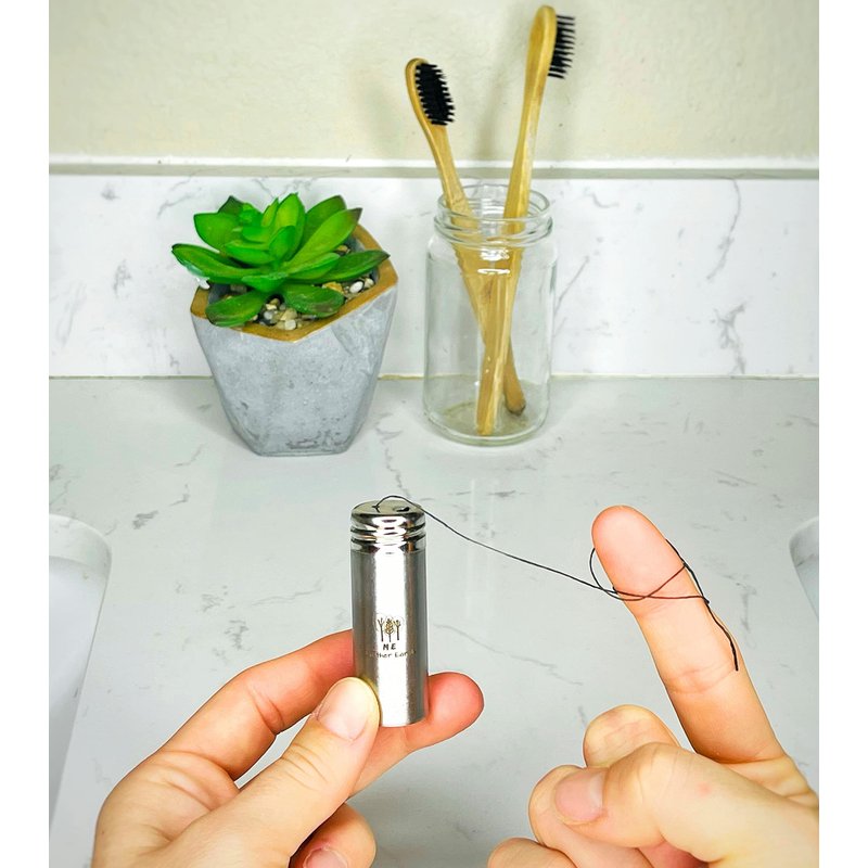 - AFTER THE SUCCESS OF OUR BAMBOO CHARCOAL FLOSS IN GLASS CONTAINER KIT NOW YOU CAN BUY THE NEW OPTION OF THE FLOSS IN THIS BEAUTIFUL STAINLESS STEEL CONTAINER. WE SELL IN CRAFT FAIRS AND ARTISAN MARKETS NOW ON AMAZON - Feel guilt free buying the best Biodegradable VEGAN Bamboo Charcoal Dental Floss with Refillable Stainless Steel Container + Extra Refill - Natural Candelilla Wax and Peppermint Essential Oil. Floss length is 33yds x2 from a Family Owned Company who really helps the environment.