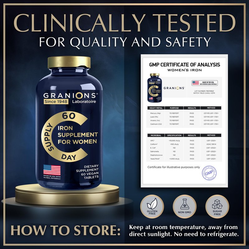 Introducing Granions, the ultimate iron supplement for women. Our iron pills are specially formulated to support women's health and are ideal for women's health needs. With a high score of 100, these iron supplements are designed to provide the necessary nutrients that your body needs to function optimally. Whether you're pregnant or just in need of an extra boost, our iron supplements for women are the perfect solution.