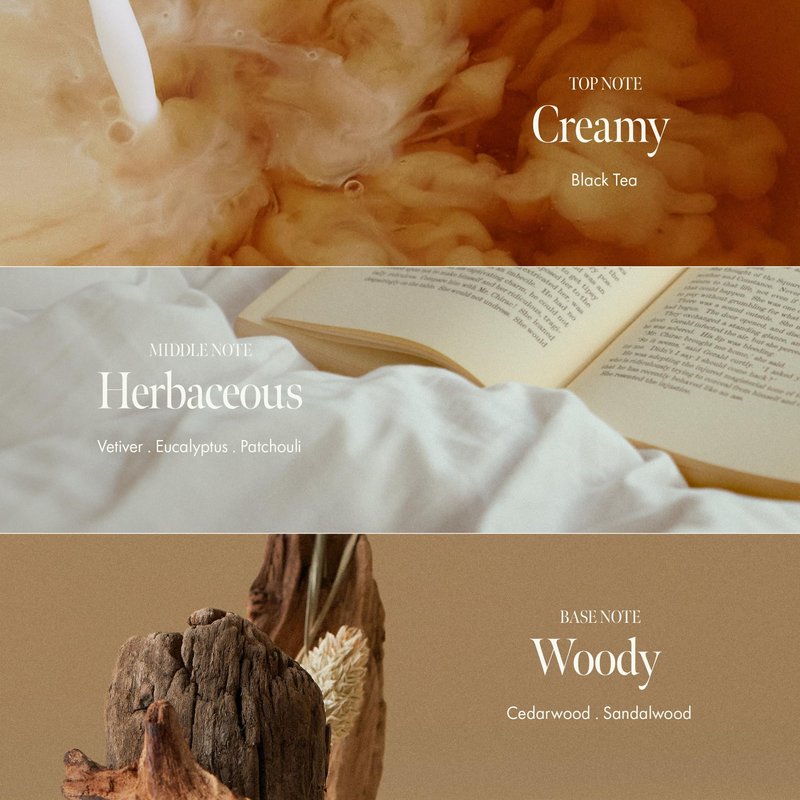 - SCENT: Top Note: Black Tea, Middle Note: Earthy, Base Note: Woody