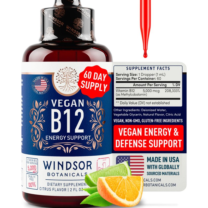 - COMPLETE DAILY SUPPORT. Vitamin B deficiency is incredibly common, especially for vegans and vegetarians. These liquid B12 drops Provide 5,000 mcg or 208,333% of your minimum daily value.