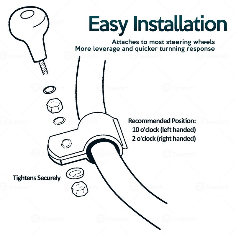 - ► INCREASES TORQUE - The Zone Tech steering wheel spinner eases single hand steering through increasing the torque of the steering wheel. This allows smoother turns, especially U-turns, faster parking, safer lane merging and in general handling tight spots.