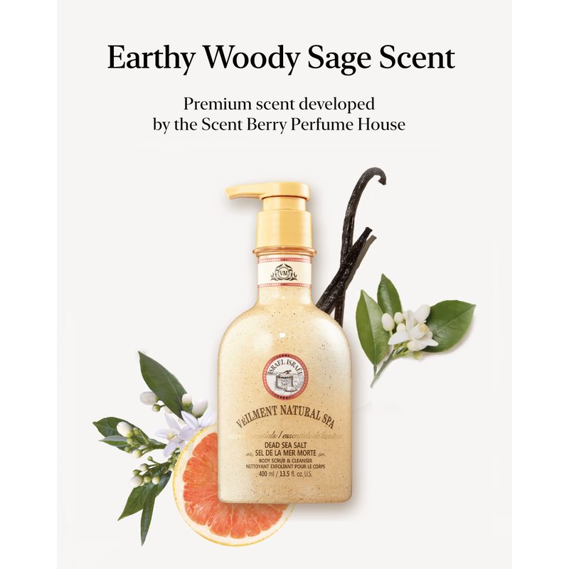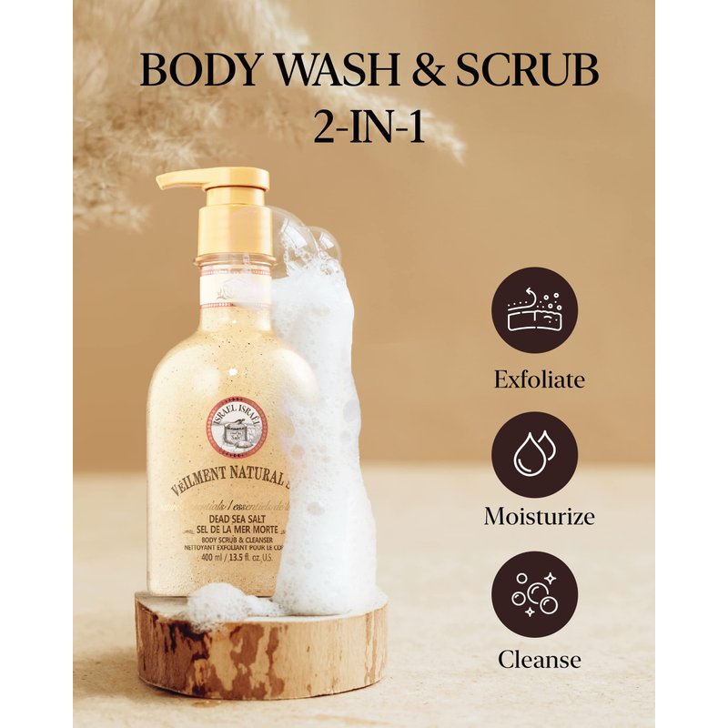 VEILMENT NATURAL SPA DEAD SEA SALT 2-in-1 BODY WASH & BODY SCRUB(13.53fl.oz) - Natural Exfoliating Salt Scrub for Deep Cleansing - Effective on Scars & Wrinkles - Moisturize Skin Polishes