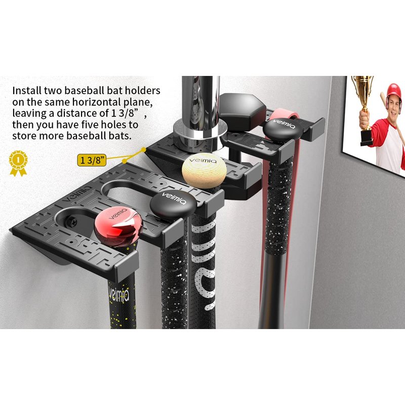 - [EASY TO INSTALL]: Please refer to our installation instructions, it only needs a few minutes to complete the installation. 1.38in wide hole distance can hold most sizes of baseballs. Please measure the diameter of your bats before purchase to avoid improper size.