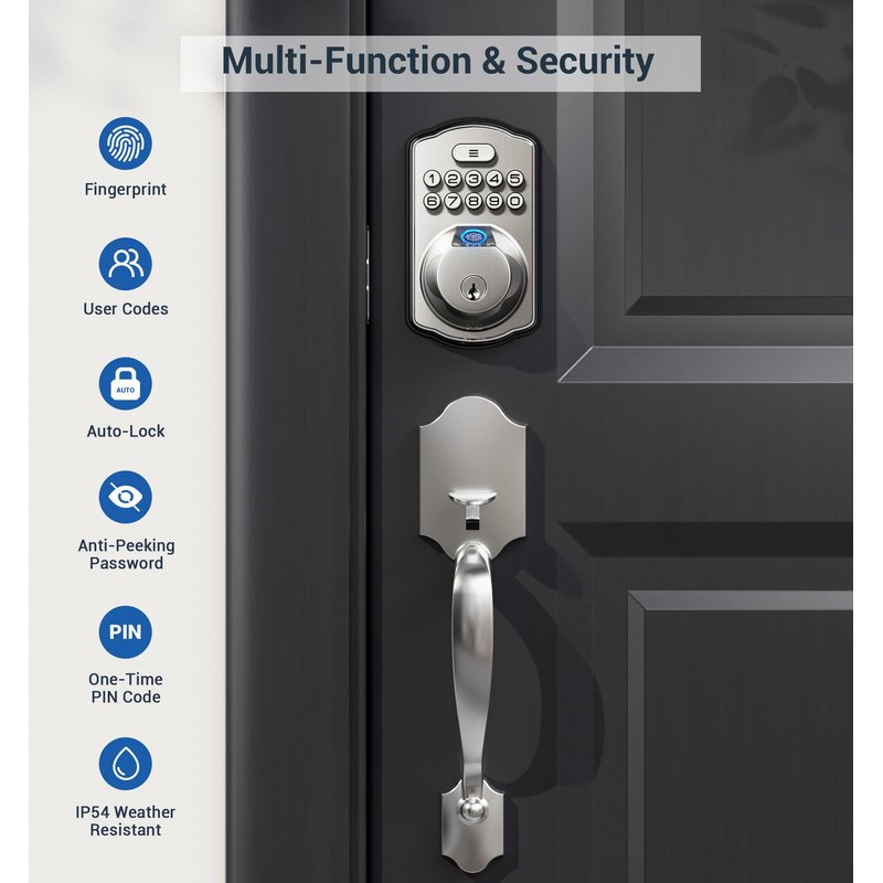 - Fingerprint Unlock: Identify your fingerprint within 0.3 seconds, unlock your door within 1 second. The biometric fingerprint recognition rate is 99.99%.