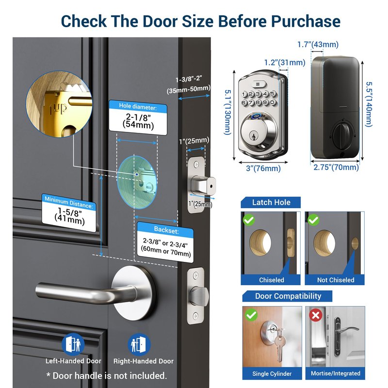 - Easy to Install: A screwdriver can complete the installation in a few minutes, suitable for all American standard left and right handed doors. ANSI Grade 3 standard certification, safe and durable;