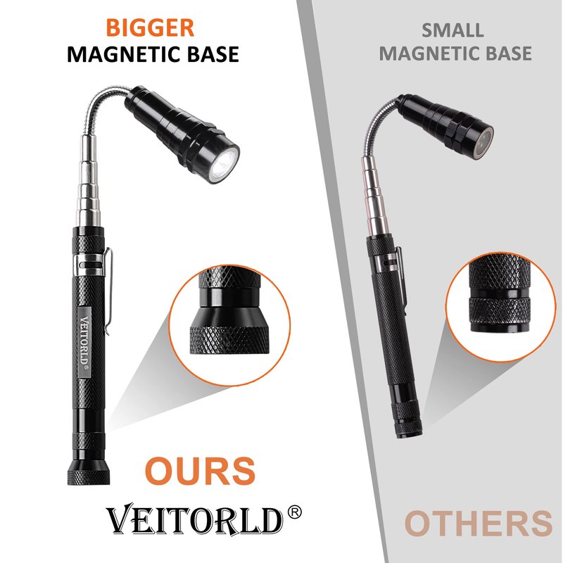 - EXPANDABLE & FLEXIBLE: Our telescoping magnetic flashlight extends from 6.8 to 23 inches with a 360° flexible neck for precise lighting and retrieval in hard-to-reach areas; Features include pocket clips and a non-slip grip for convenience