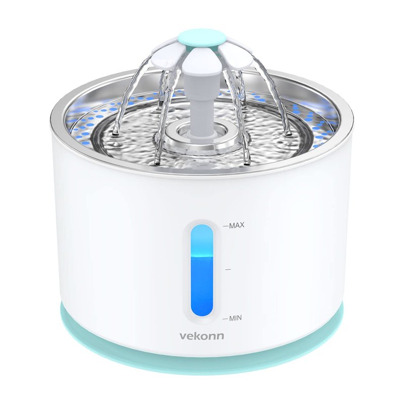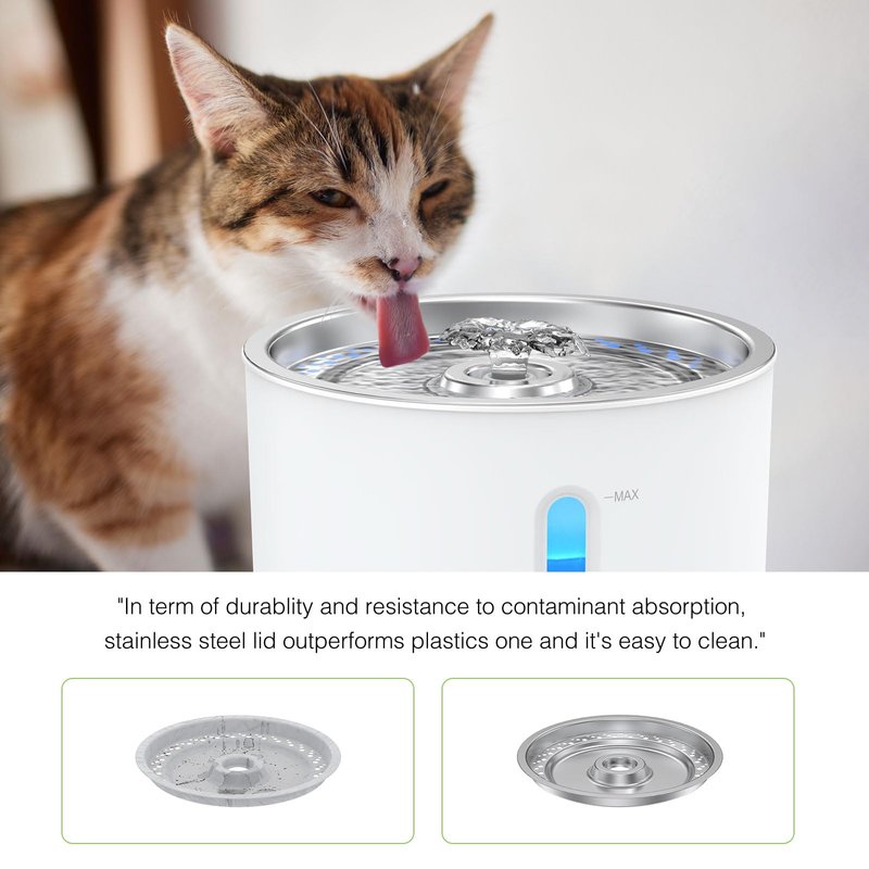 Vekonn Cat Water Fountain Stainless Steel Top, Pet Water Fountain for Small Dog and Cat with Water Level Window