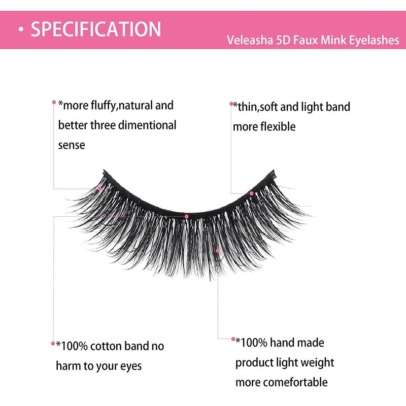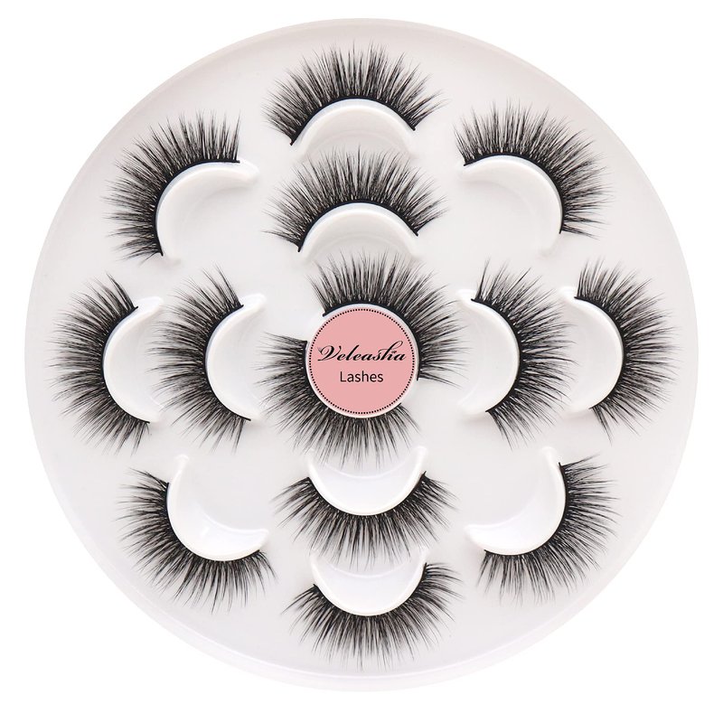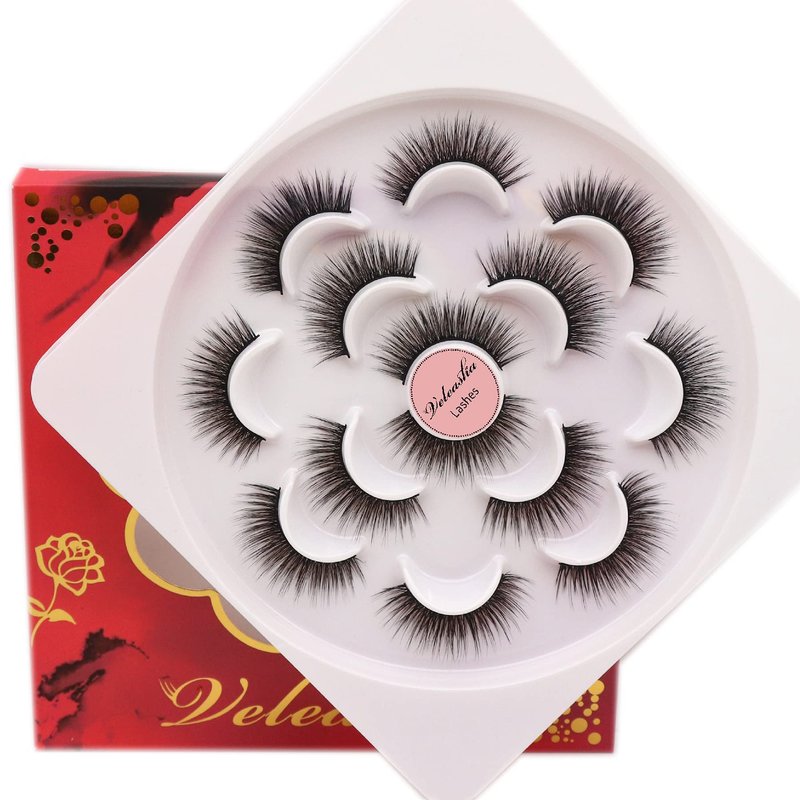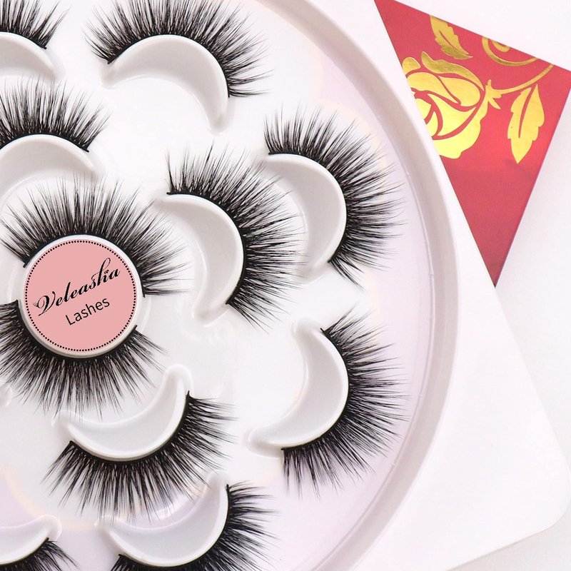 Veleasha 5D Faux Mink Lashes Handmade Luxurious Volume Fluffy Natural False Eyelashes 7 Pairs (Pretty)