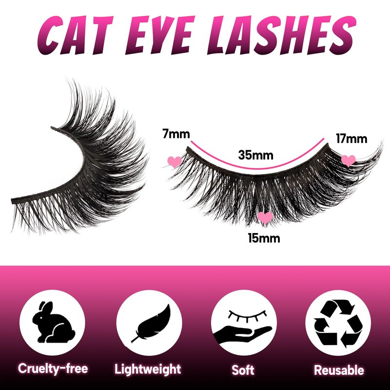- Cat Eye Lashes: The lashes are lengthened from the inside out, creating a vivid and shiny cat eye look. You can wear it with any style to make your eyes look more attractive.